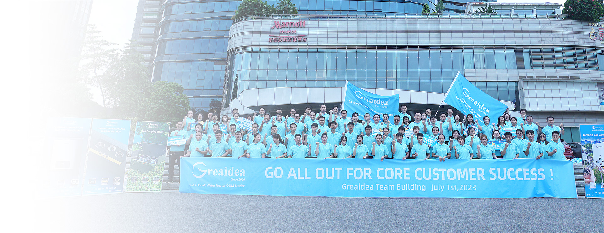 - Greaidea has its own 2 production bases with over 500 employees,covering 100,000㎡. In order to meet the marketing needs, we have equipped with 6 assembly lines for gas hob and range hood,3 assembly lines for gas water heater.